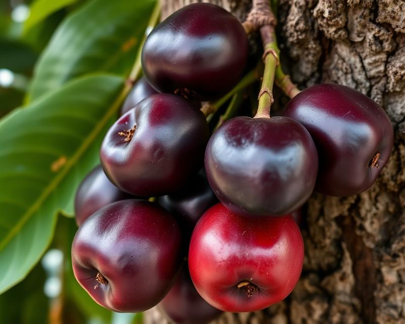 Jabuticaba, znana również jako Plinia cauliflora, wywodzi się z południowo-wschodniej Brazylii, zwłaszcza z rejonu Minas Gerais. To drzewo owocowe osiąga wysokość od 3 do 13 metrów. Co czyni je tak niezwykłym? Owoce jabuticaby pojawiają się bezpośrednio na pniach i gałęziach, co jest dość rzadkie wśród innych drzew owocowych.
