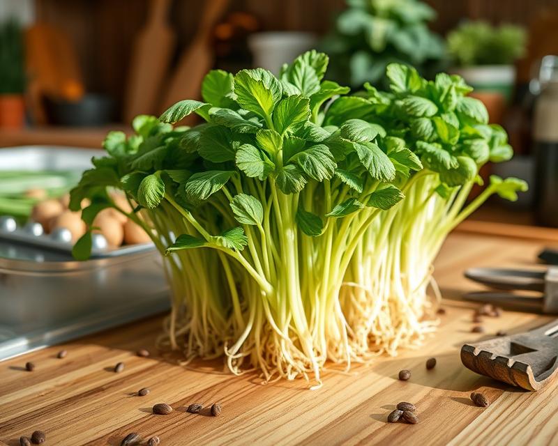 - Hodowla w kiełkownicy: Po namoczeniu, przepłucz nasiona i umieść je w kiełkownicy. Powinny tam pozostać przez maksymalnie 6 dni, w miejscu o temperaturze pokojowej i lekko ocienionym.