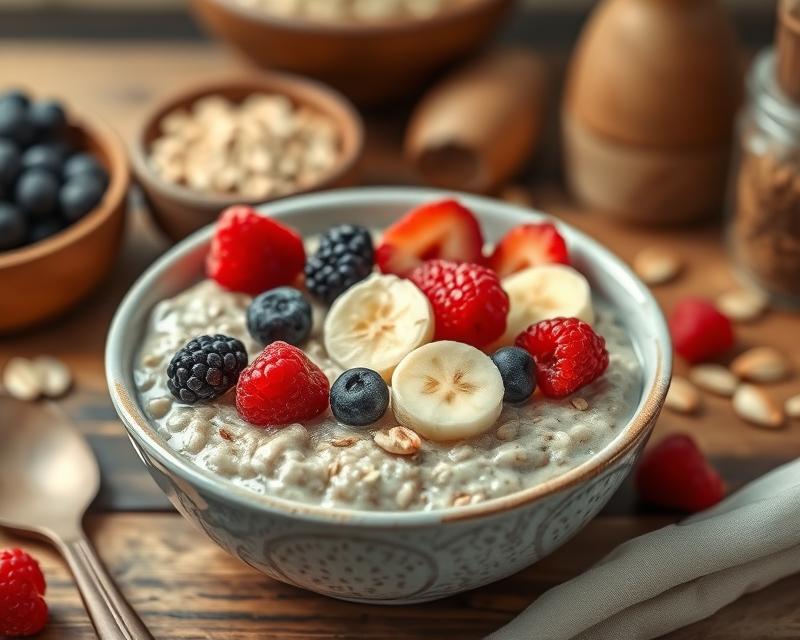 Możliwości są szerokie — naturalny jogurt, świeże owoce, chrupiące orzechy czy różnorodne nasiona to świetne opcje, które podnoszą wartość odżywczą owsianki.